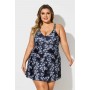 • Black And White Flowers Print Scoop Neck Plus Size Swimdress