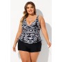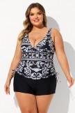 • Black Cloudy Pattern V Neck Adjustable Strap Plus Size Tankini Set