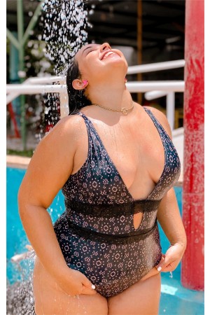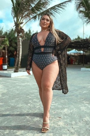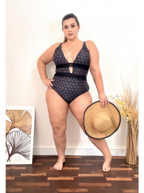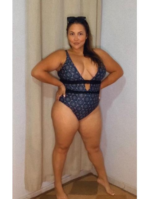 I normally wear a size 14 (weight 180lbs, bra size 36G at 5'4" for reference). This bathing suit hides the lovehandles one might have while still maintaining the sex with the deep V. I have to admit it took a bit of courage for me to wear this but once I got over it the bathing suit held my breasts in place. Very comfortable and flattering. Also, husband approved