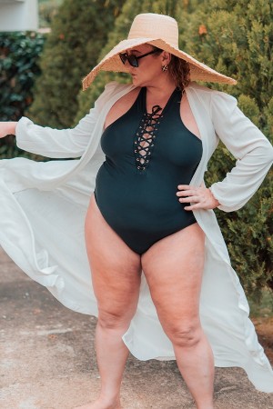I bought this suit last year in the summer because I had bought as pass for my daughter (who was 5 at the time) and I to go to our local aquatic center. We were there about 4-5 times so she could become proficient at swimming. I always got compliments on this suit and where other ladies could buy it. I never feel like I’m going to fall out of it on top or the bottom (I’m a 38F and I usually wear 12-14 pants size). I ordered a 14 to be safe and it fits great, very flattering if you’re an hourglass shape. It’s extremely practical too, it’s not one of these suits that’s only for showing off and sunbathing. You can swim in this, I had no problems helping my daughter learn how to swim better. This is probably one of the first suits that I haven’t felt the even the slightest bit self conscious in. It’s not too sexy to where you’re worried about getting dirty looks at a public pool and you don’t have to worry about your boobs falling out when you’re swimming with your children.