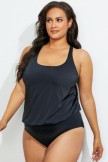 • Black Scoop Neck Racerback Blouson Tankini Set