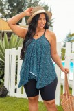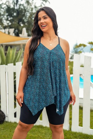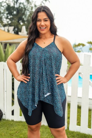 Blue Dot Print VNeck Thick Strap Plus Size Tankini Set