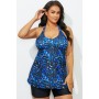 • Blue Leaf Print Racerback Tankini Set