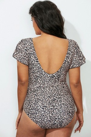 Cheetah Flutter Sleeves V-Neck One Piece Swimsuit