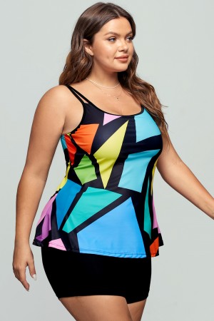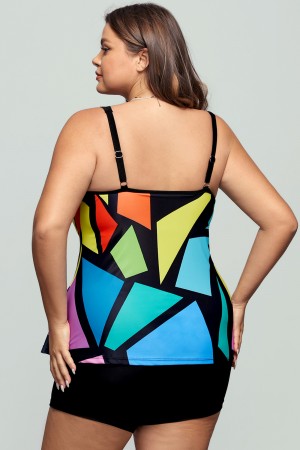 Colorful Plus Size Geometric Print Tankini Set