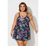 • Colorful Flowers Dot Print Scoop Neck Plus Size Swimdress