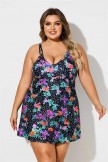 Colorful Flowers Dot Print Scoop Neck Plus Size Swimdress