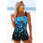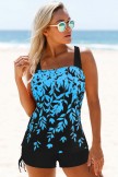 • Drawstring Side Wide Strap Printed Tankini Set