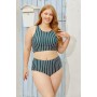 Green Striped Scoop Neck Wide Straps Cross Back Bikini Top And HighWaist Bottom