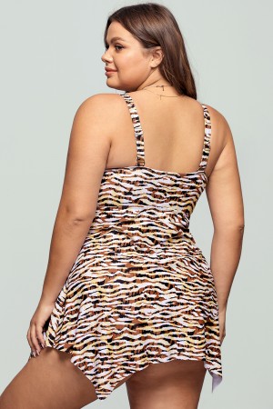 • With twist-tie bodice, this floaty swim dress is ultra-flattering. Fully lined power-mesh brief for tummy control. A-line silhouette. Detached brief.
