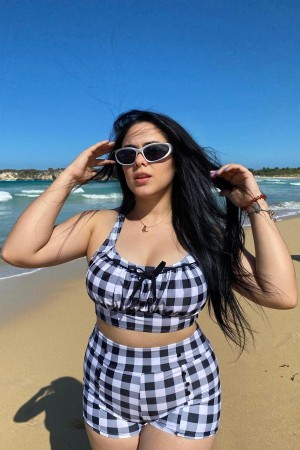 nice quality suit in a great black and white color. Stylish and comfortable for swimming