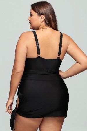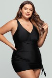 • Create three styles in one with a skirt that can be tied above, at or below the hip. V-neck, H-strap with hook. Fully lined, front power-mesh lining for tummy control.
