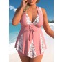 Patchwork Pink Ditsy Floral Print High Waisted Swimdress Set