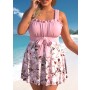 • Plus Size Frill Floral Print Pink Swimdress Set