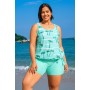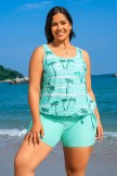 Plus Size Green Tree Print Scoop Neck Tankini Set