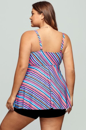 Plus Size Rainbow Stripe Tankini Set