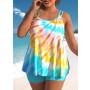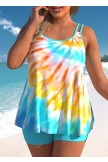 • Plus Size Tie Dye Print Cyan Tankini Set