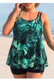 Plus Size Tropical Print Green Tankini Set