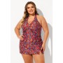 Red Floral Print Halter Strap Twisted Front Plus Size Tankini Set