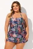 Rock a stylishly charming look with our Red Tropical Leaf Print Bandeau Halter Strap Plus Size Tankini Set. This top features a sexy bandeau neck connecting with halter straps for full support. Pairing well with a high-waisted bottom for body modification.