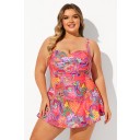 Red Floral Print Sweetheart Neck Adjustable Strap Plus Size Swimdress