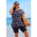 Black Leafy Short-Sleeved Casual Tankini Set