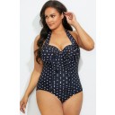 Black Speckle Halter Tie Front One Piece Swimsuit