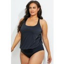 Black Scoop Neck Racerback Blouson Tankini Set