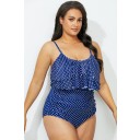 Scoop Neck Polka Dot Tiered OnePiece Swimsuit