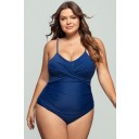 Omniscient Solid Wrap Front Plus Size One Piece Swimsuit
