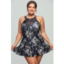 Floral Green Strappy High Neck Swimdress