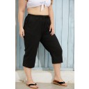 Black Elastic Waistband Pockets Drawstring Long Trousers