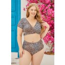 Leopard VNeck Bikini Top with Belt And HighWaist Bottm