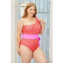 Red Animal Print OneShouldert CutOut Belt OnePiece Swimsuit