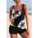 Spaghetti Strap Colorful Tribal Print Tankini Set