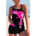 Cross Strap Floral Print Halter Tankini Set