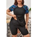 Tropical Print Raglan Sleeve Bikini Swimsuit With Short Sleeve