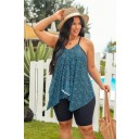 Blue Dot Print VNeck Thick Strap Plus Size Tankini Set