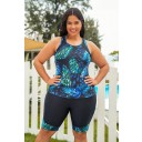 Cyan Palm Scoop Neck Raceback Plus Size Tankini Set