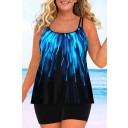 Plus Size Double Straps Black Ombre Tankini Set