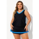 Black Colorblock V Neck Thick Strap Plus Size Tankini Set