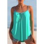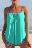 • Striped Bowknot Cyan Spaghetti Strap Tankini Set
