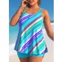 • Striped Plus Size Cyan Double Straps Tankini Set