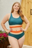 The Teal Colorblock Square Neck Wide Straps Sporty Bikini Top And High-Waist Bottom Sets features a classic bikini top with a comfortable square neck, and non-adjustable shoulder straps. Patching a high-waist bottom for a perfect beach look.