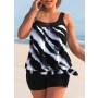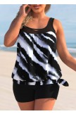 • Tie Dye Print Plus Size Color Block Tankini Set