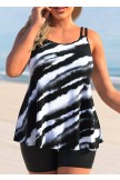 • Tie Dye Print Plus Size Color Block Tankini Set
