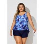 • Tie Dye Print Side Tie Women Plus Size Tankini Set