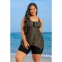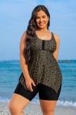 Yellow Dot Print Scoop Neck Thick Strap Plus Size Tankini Set